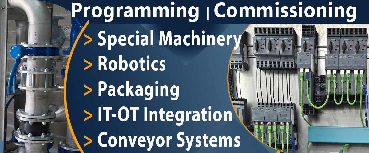 Innovative Automatisierungslösungen im Sondermaschinenbau, in der Förder- und Verpackungstechnik: Von der Entwicklung über die Programmierung mit Siemens TIA Portal bis zur erfolgreichen Inbetriebnahme. Mit Know-how in Industrie 4.0 entstehen maßgeschneiderte Konzepte, die Prozesse effizienter machen, Kosten senken und langfristige Wettbewerbsvorteile sichern.